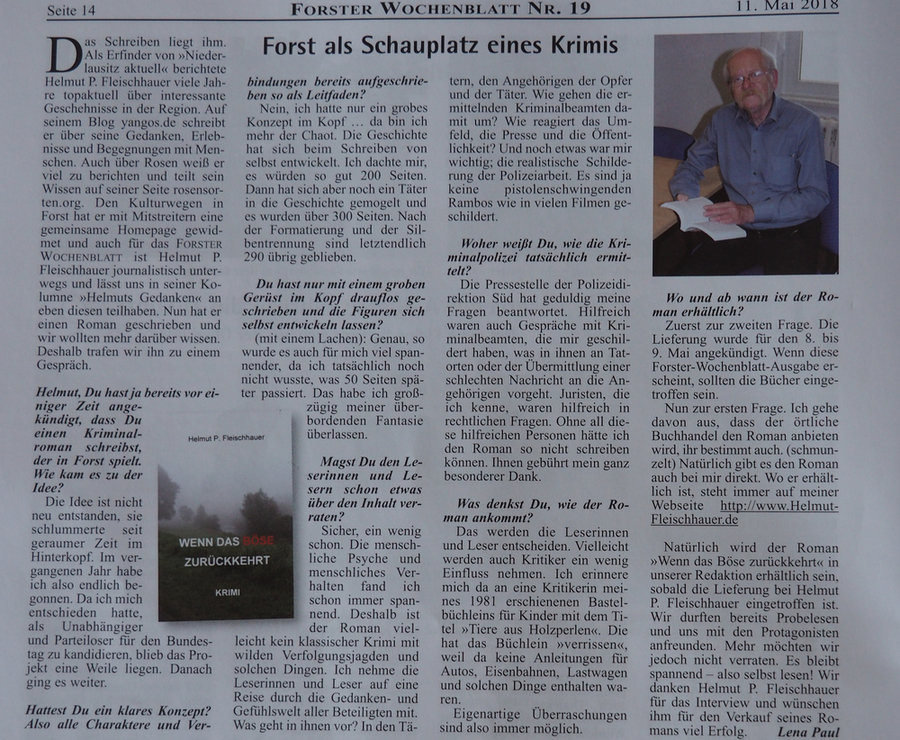 Interview im Forster Wochenblatt vom 11. Mai 2018