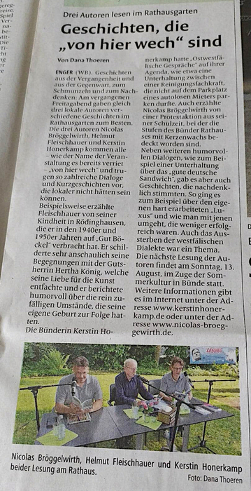 Beitrag im Westfalen Blatt über die Lesung am 16.6.2023 in Spenge